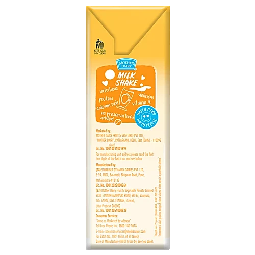 Milk, Sugar, Milk Solids, Mango Pulp (29%) Acidity Regulator (339(ii)), Nature-Identical Flavouring Substances, Stabilizer (407), Food Colours (102 & 110).